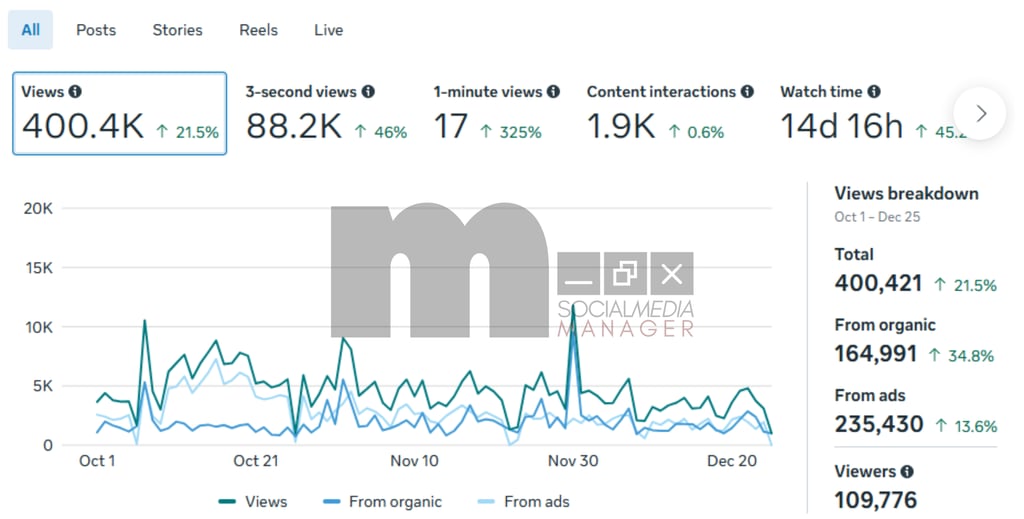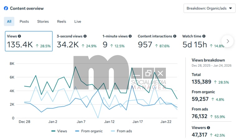 Strategic posting beats heavy ads — with minimal ad spend, organic content drove massive reach and profile visits.